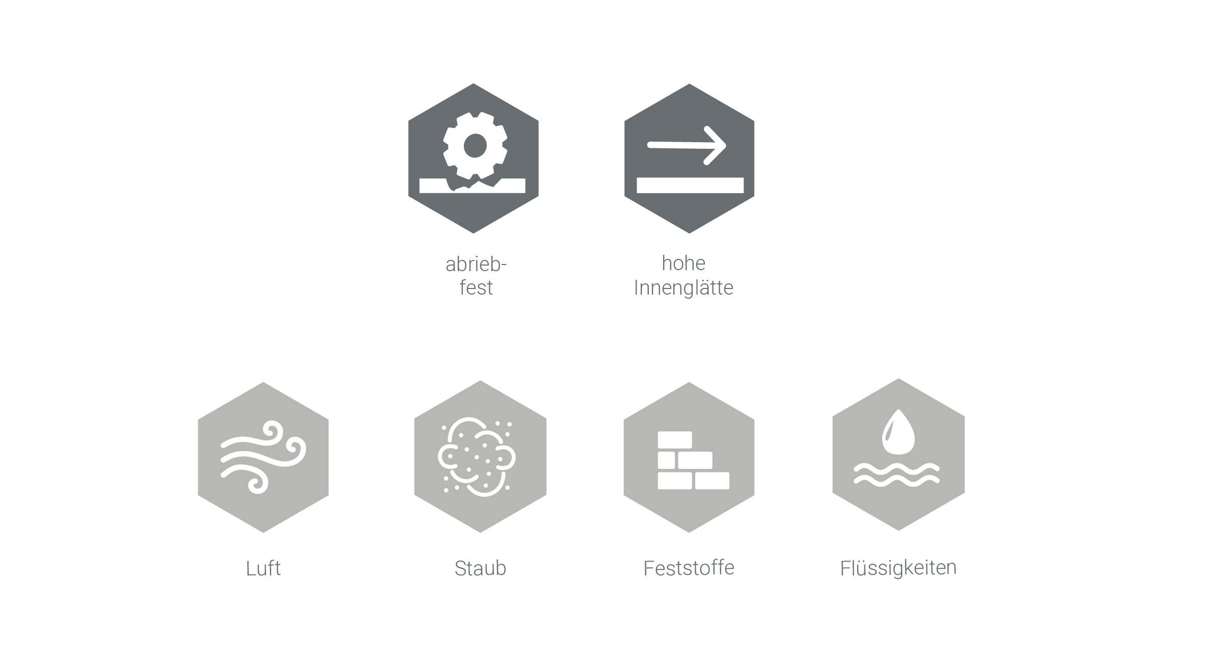 Damit Sie Ihren Schlauch auch sachgerecht verwenden, ist es wichtig, im ersten Schritt den richtigen Schlauch für Ihre Anwendung auszuwählen. Denn nur so ist eine korrekte Handhabung und Installation möglich, die auch die Langlebigkeit, Zuverlässigkeit und Sicherheit des Schlauchsystems unterstützt. Achten Sie bei der Wahl des Schlauches darauf, welche Materialien oder Rohstoffe durch den Schlauch transportiert werden sollen, welche Temperaturen oder Drücke herrschen und ob der Schlauch Vibrationen ausgesetzt ist. Auch das Material des Schlauches ist entscheidend. Beachten Sie die chemischen Eigenschaften des Mediums und ob es äußere Einflüsse wie Abrieb oder UV-Strahlungen gibt. Darüber hinaus spielen natürlich auch Durchmesser und Länge eine Rolle.